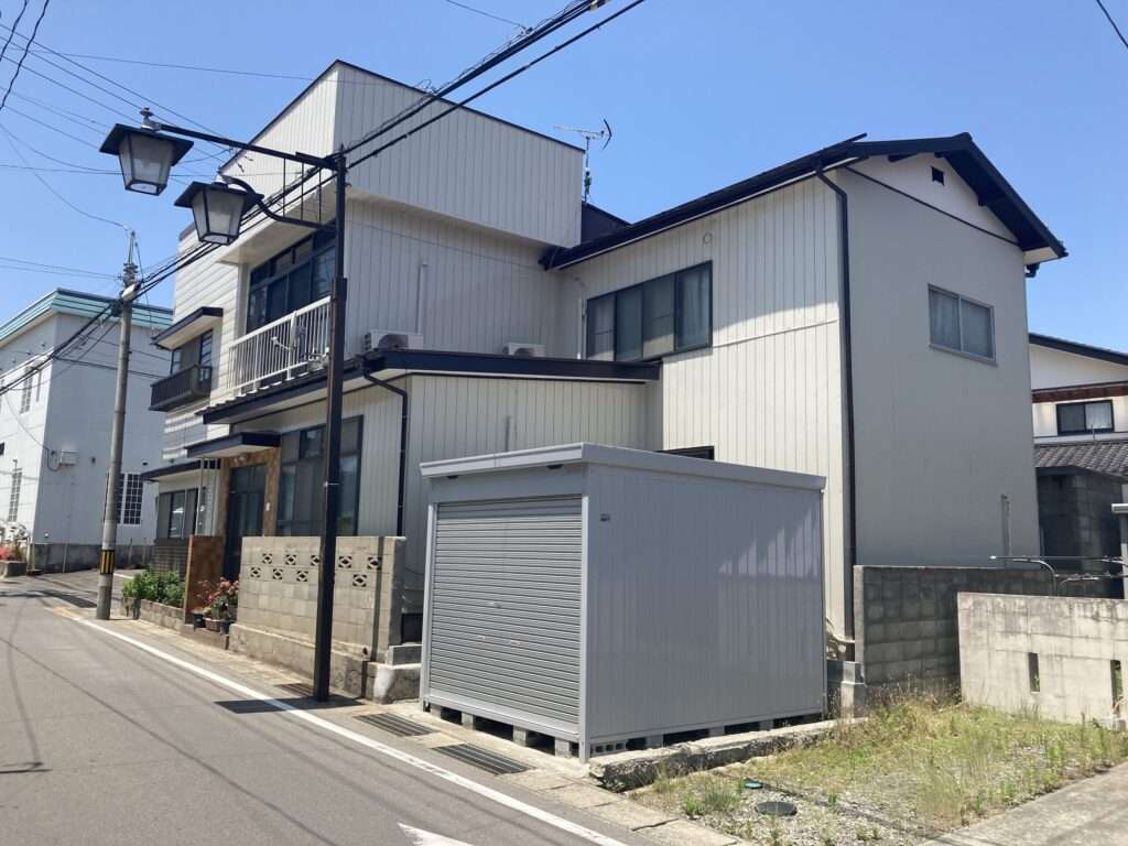 あわせて、お客様からは「美容室の廃業に伴い、庇テントを撤去して、よりすっきりした建物外観にしたい」というご要望もいただきました。既存の庇テントを取り外し、外壁塗装と一緒に仕上げることで、店舗感を抑えたシンプルで落ち着いたファサードへと生まれ変わりました。